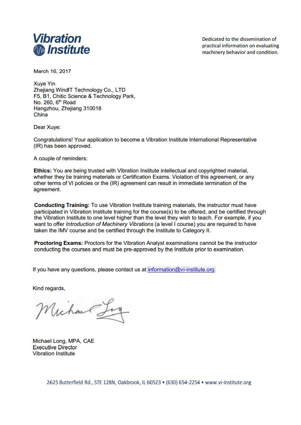 - 美国振动分析师协会合作证